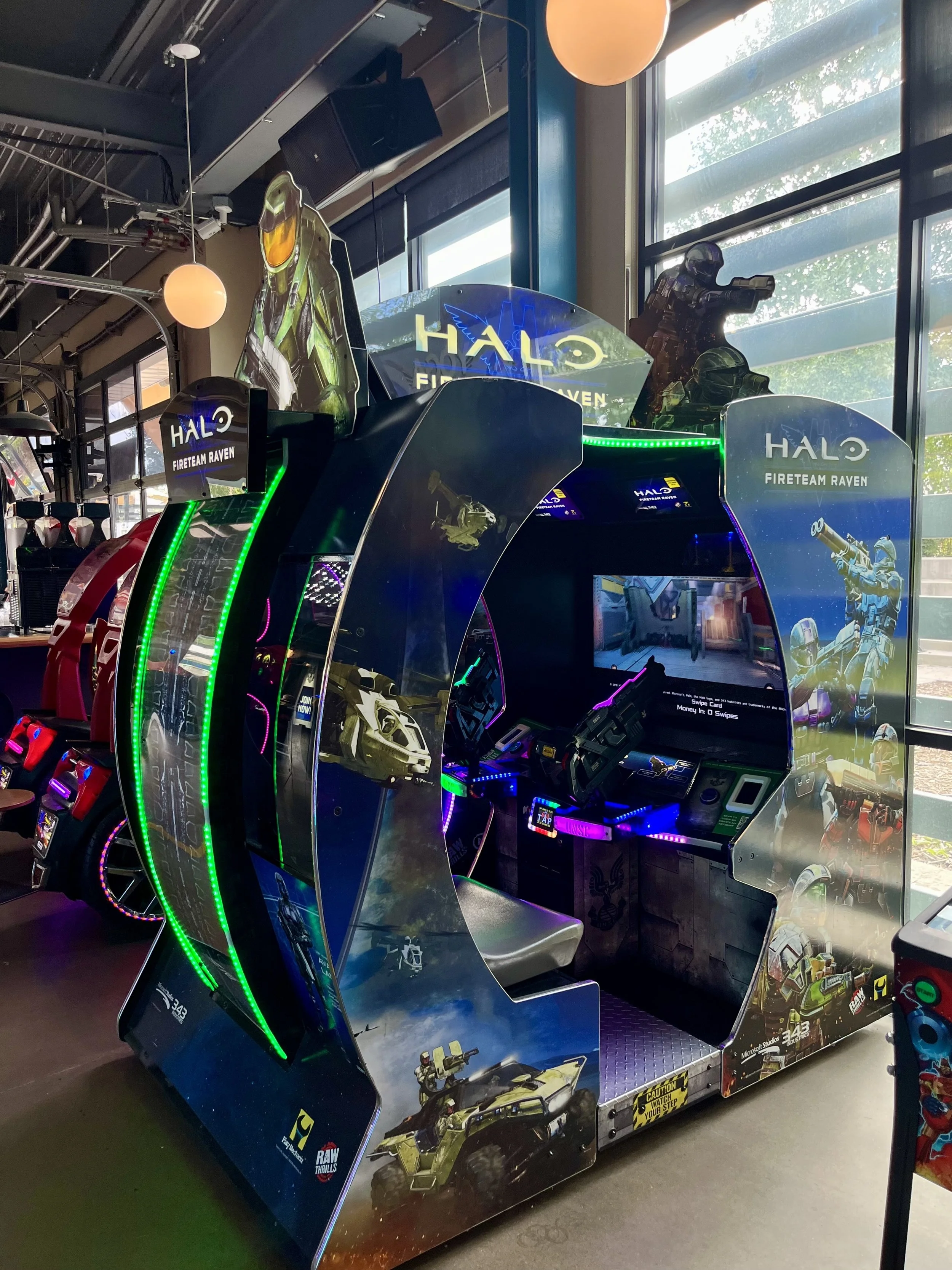 We have a rotating selection of pinball and arcade games. Play cards may be purchased at the blue kiosk near the front host stand and front door. Game plays start at 50 cents or more,
